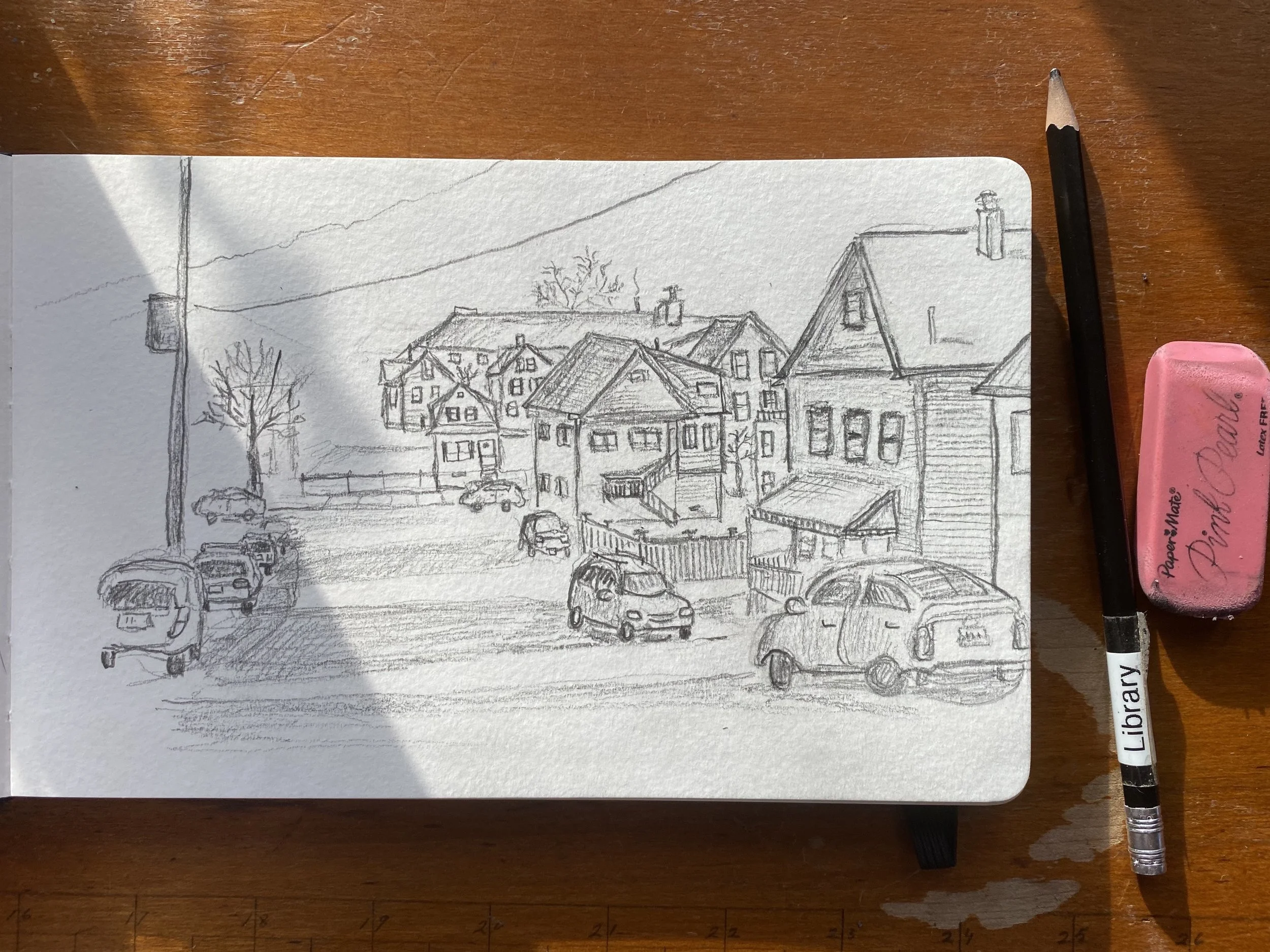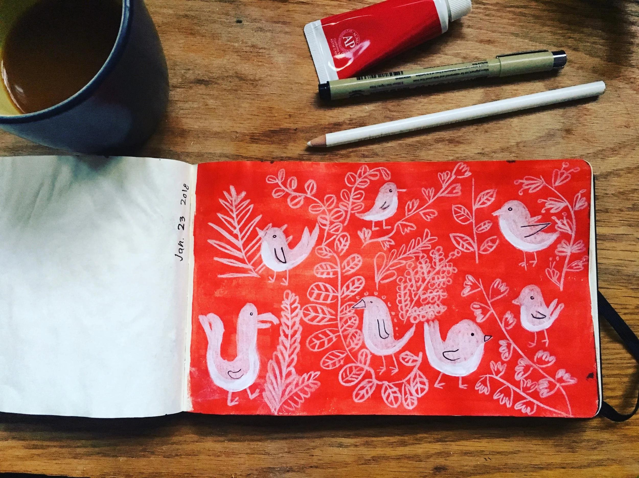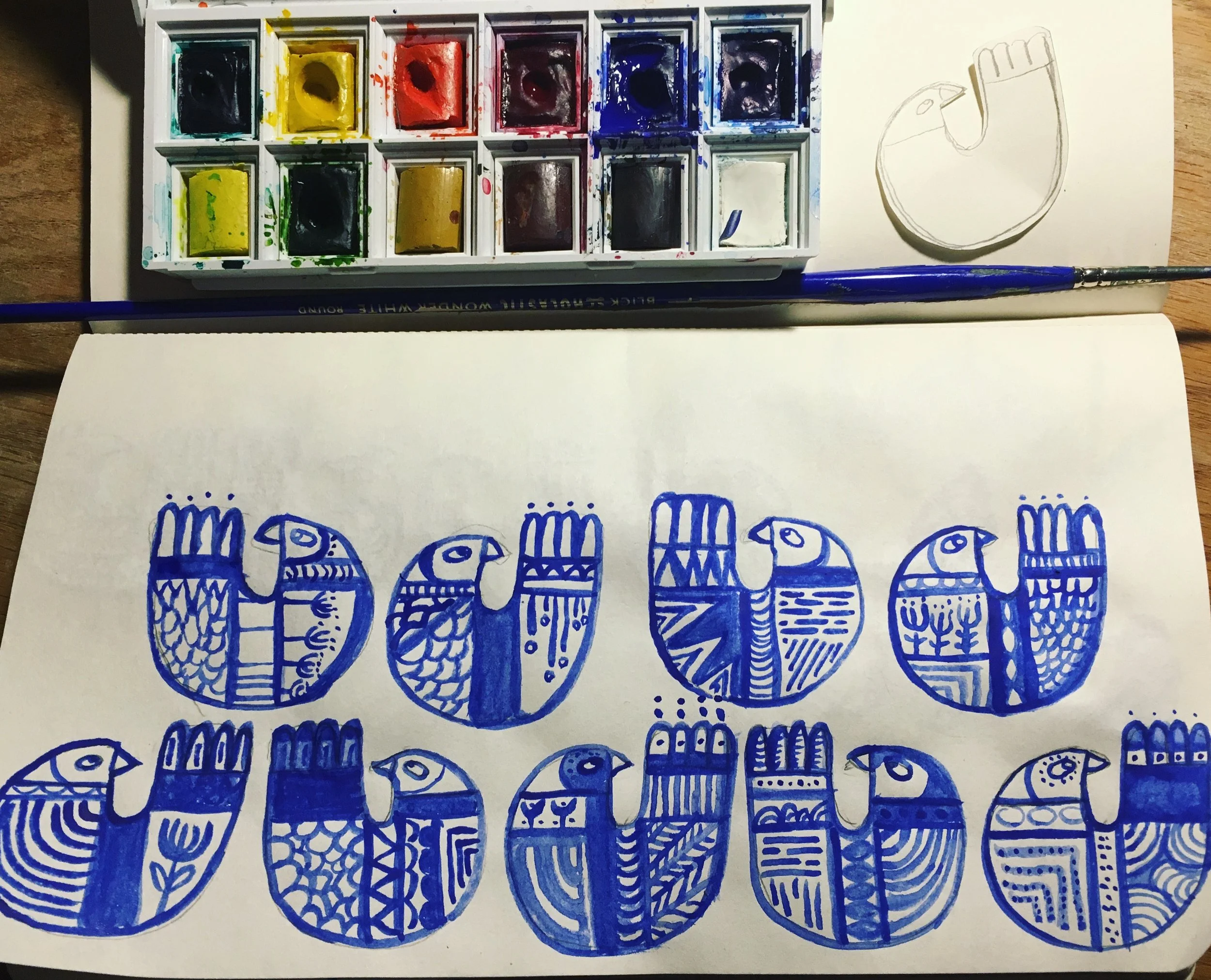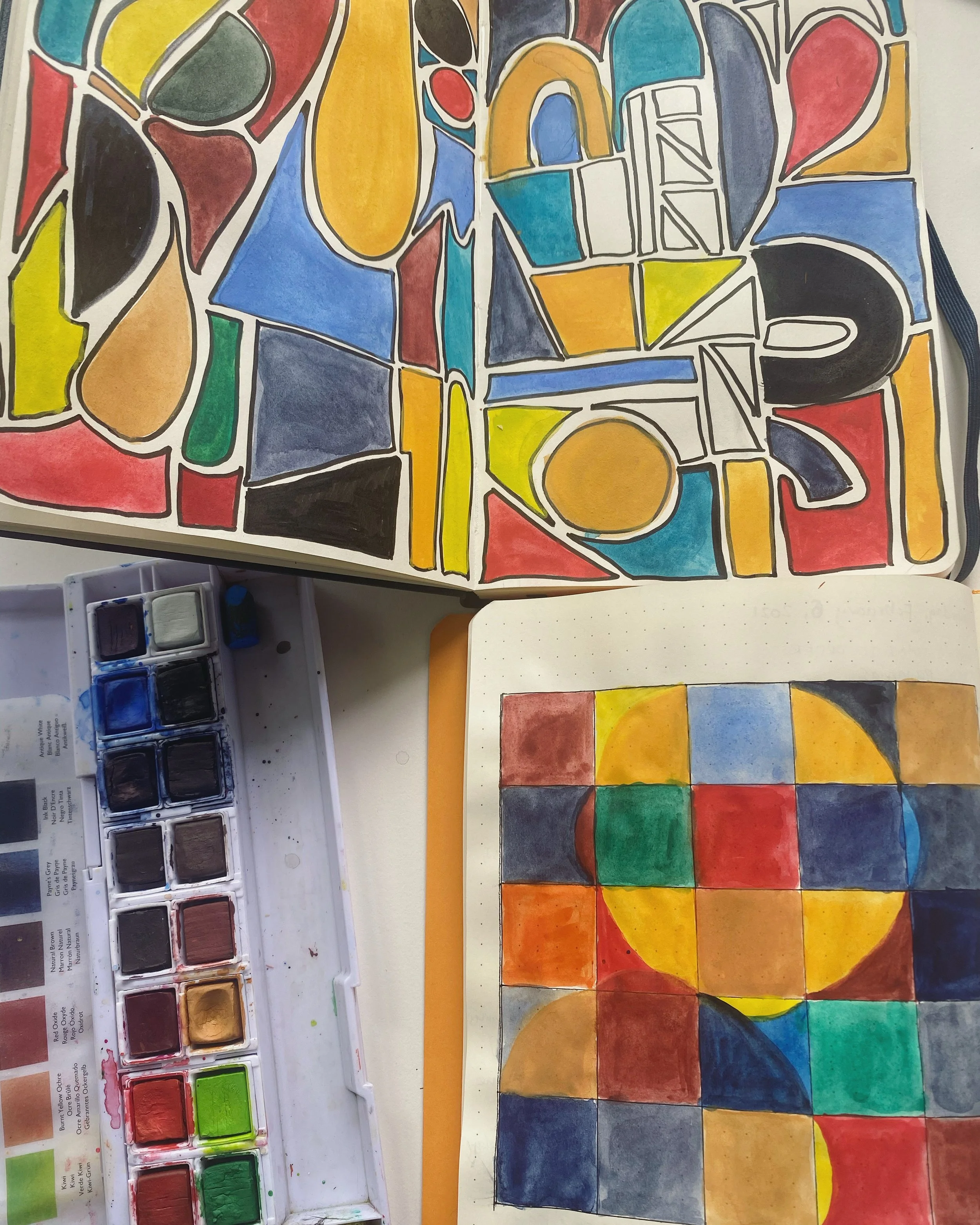 This gallery displays a combination of sketches and complete work, and includes drawings, paintings, lino prints, collages, paper weavings, and more.
