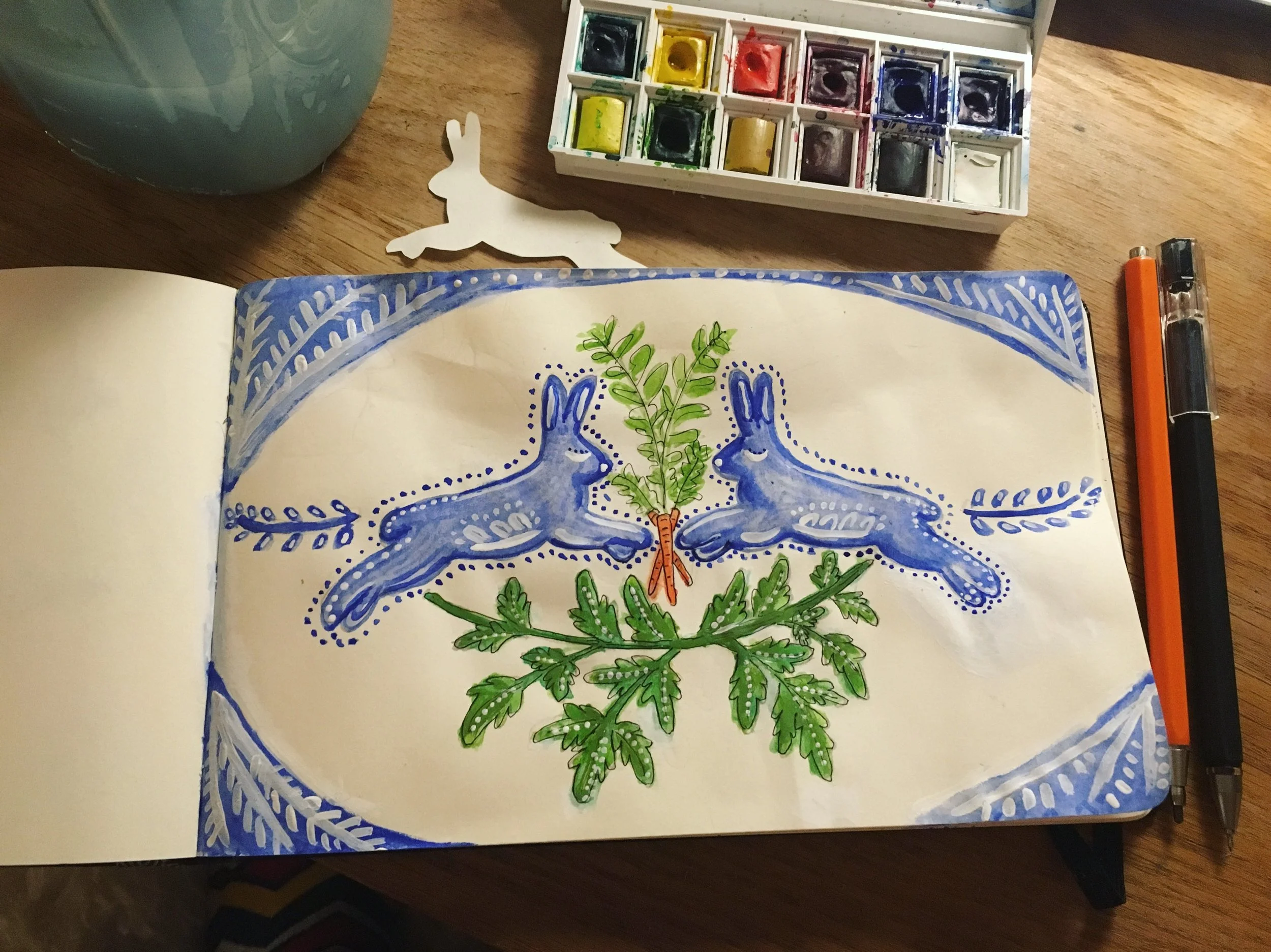 large illustration #2–inspired by work with 4-year-olds (oil pastel & watercolor)
